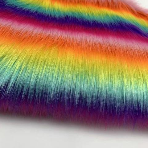 Hot Sale Colorful rainbow Long Pile Fur Fabric Artificial Faux Fur Fabric